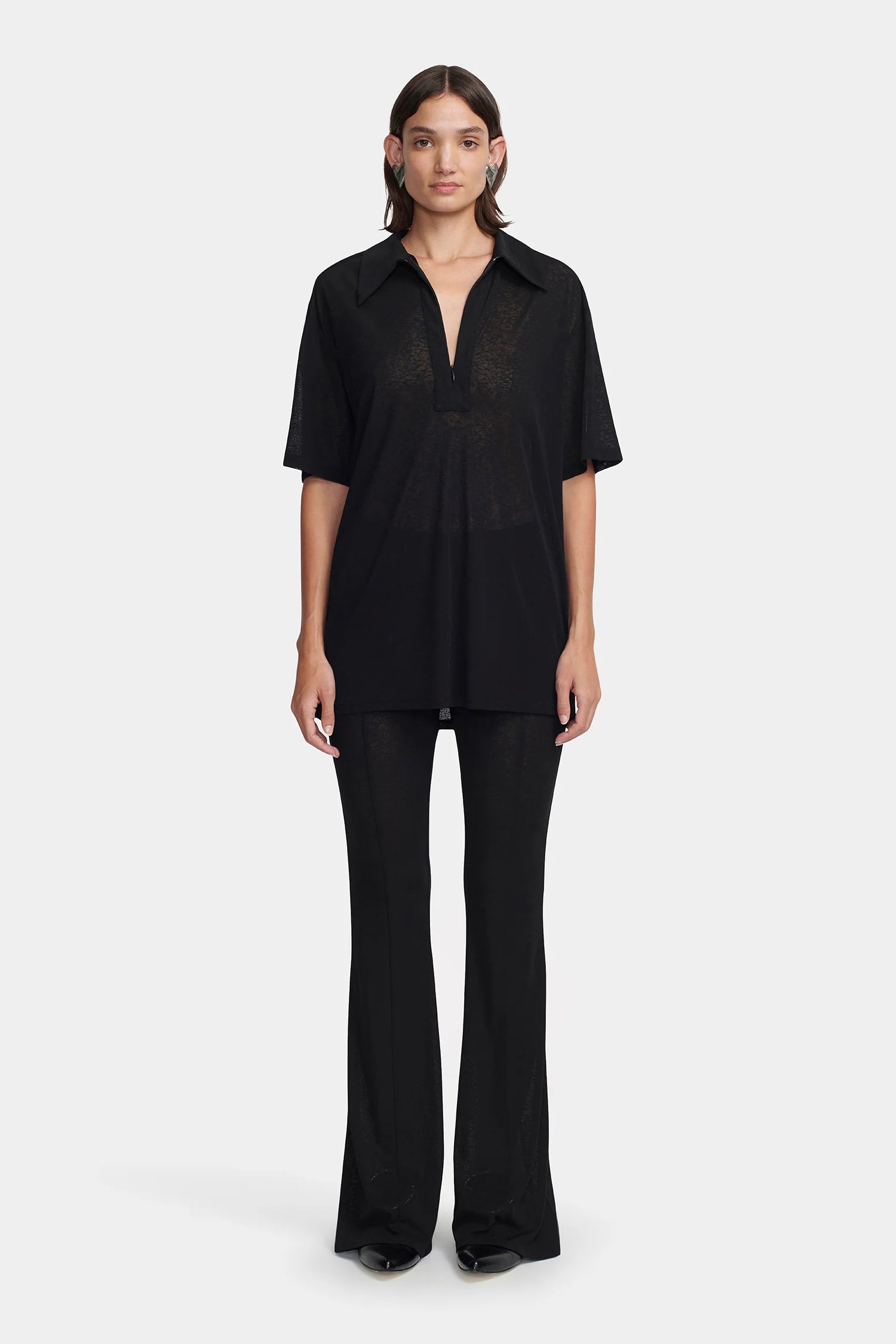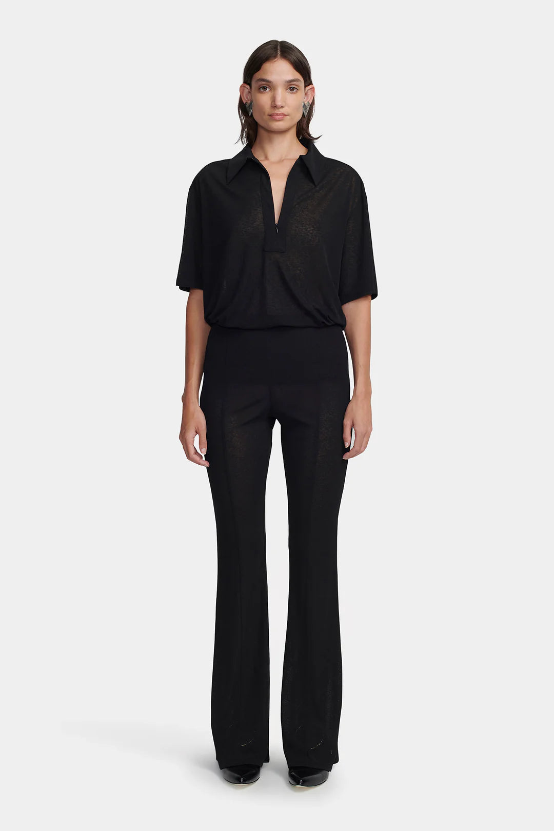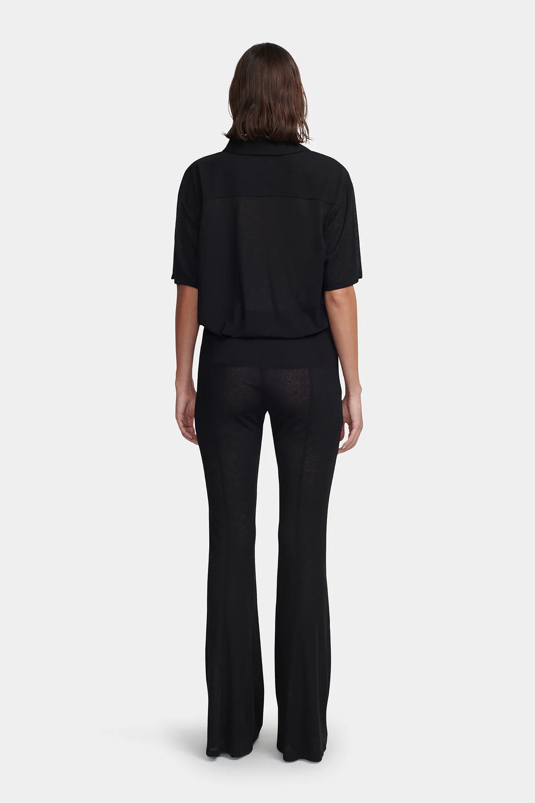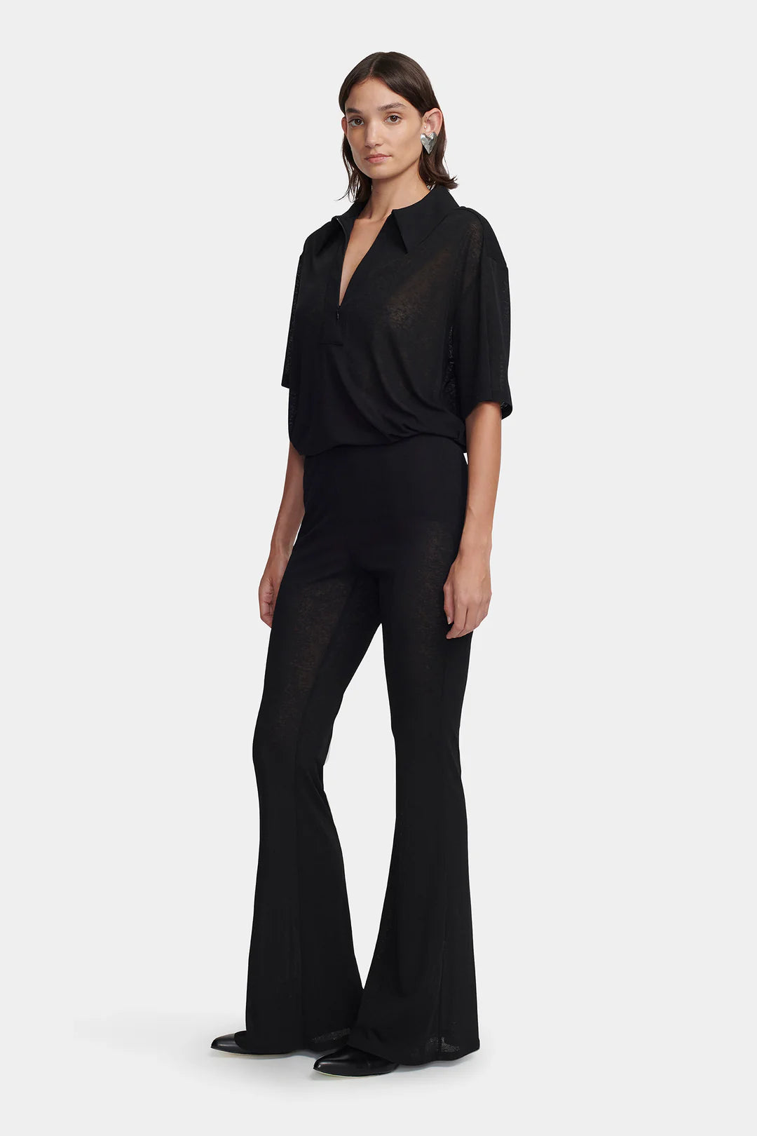 The Jasper Flares are designed to sit high waisted and are made in a sheer textured jersey fabrication. Flaring out slightly from the knee down, these are the perfect pant to look stylish while on the go. Pair with the matching Deluca top for a chic tonal set.