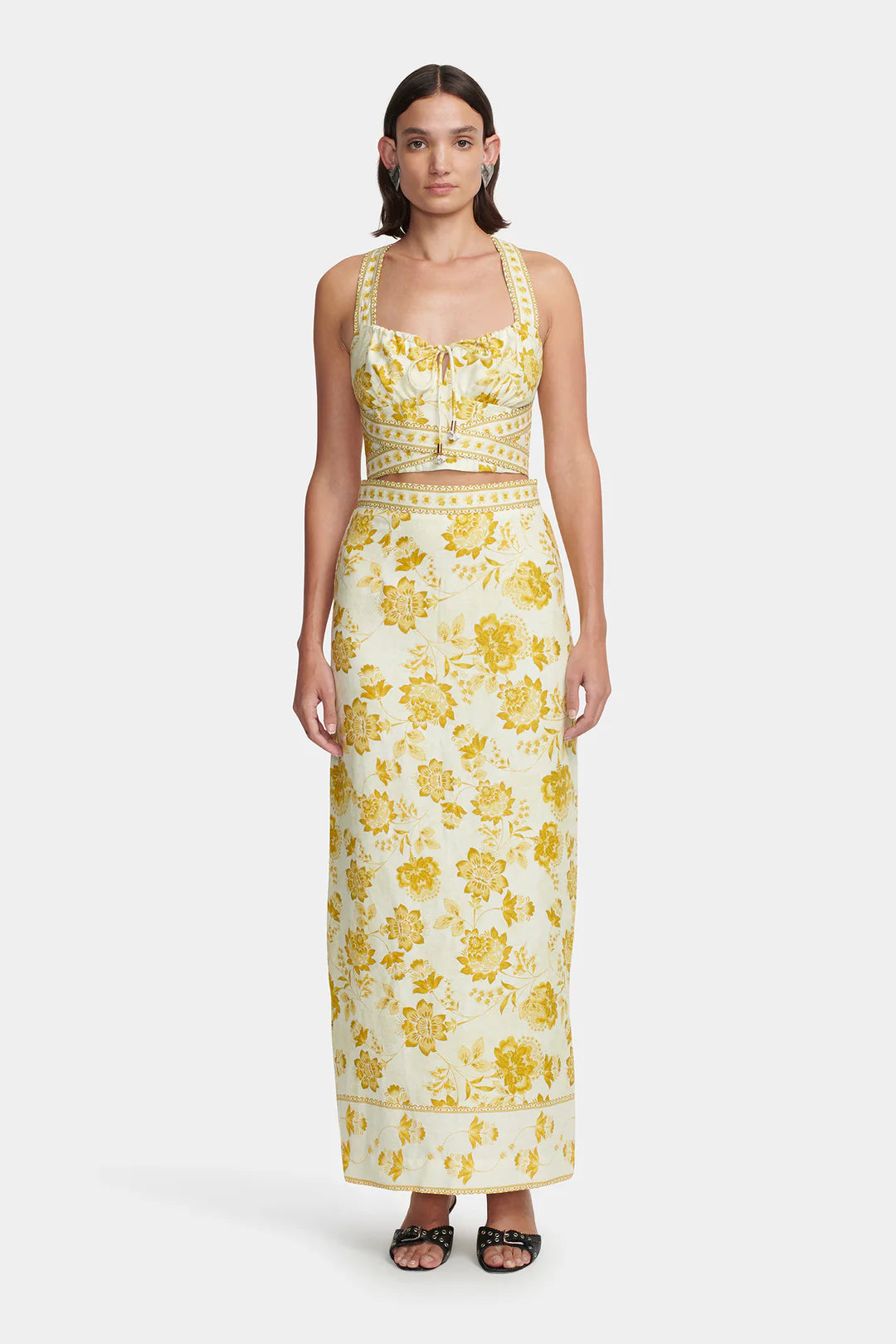 The Marielle Midi Skirt is a tailored midi pencil skirt made from 100% linen fabrication. The skirt sits high waisted and is fully lined for ease of wear. Pair with the matching Jean Corset Top for your next occasion.