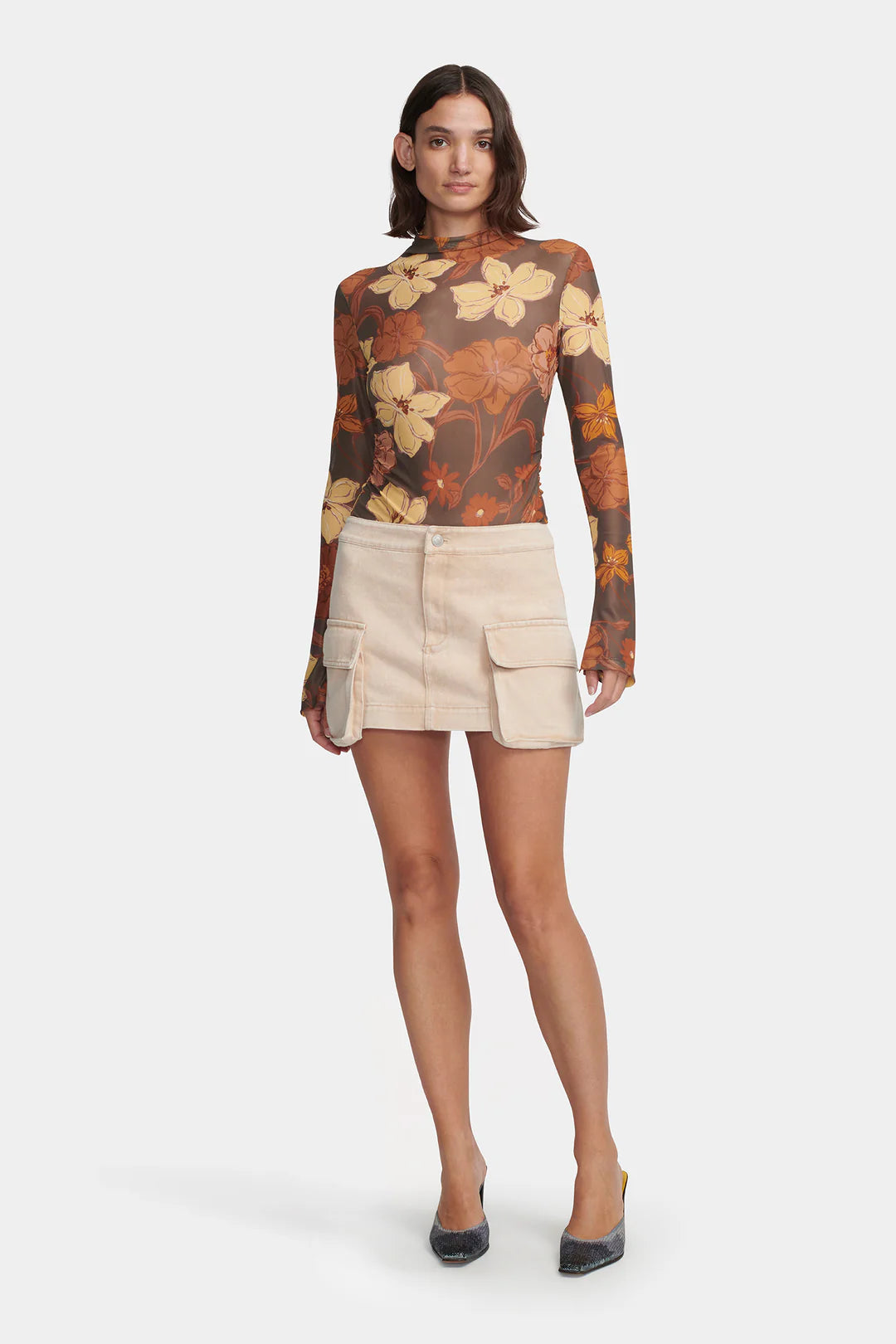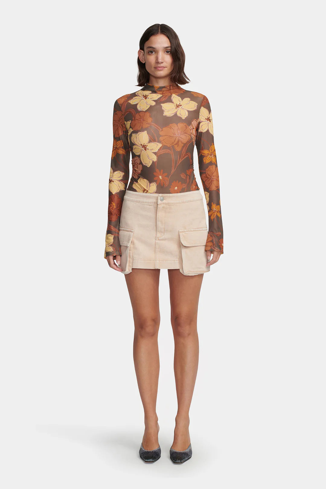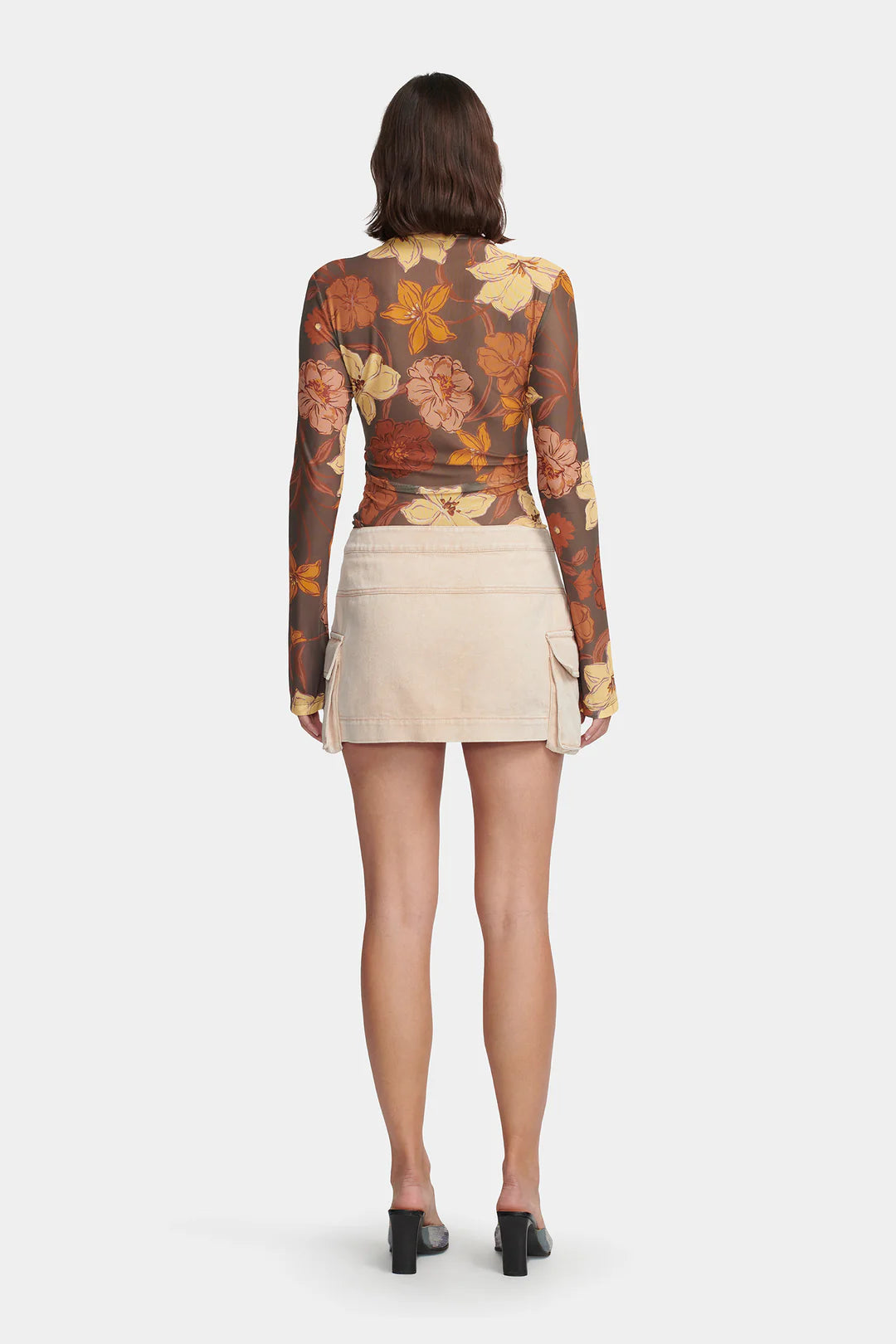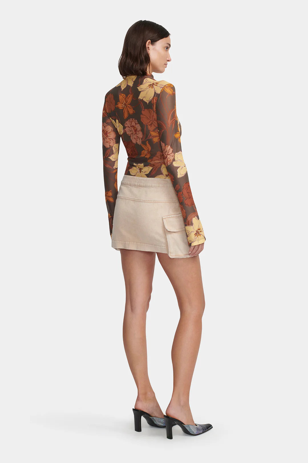 The Ollie Denim Skirt is a mini length skirt with cargo style pockets that sit below the hemline. The skirt is a mid rise fit and pairs perfectly with the matching Xander Denim shirt for a cool tonal set.