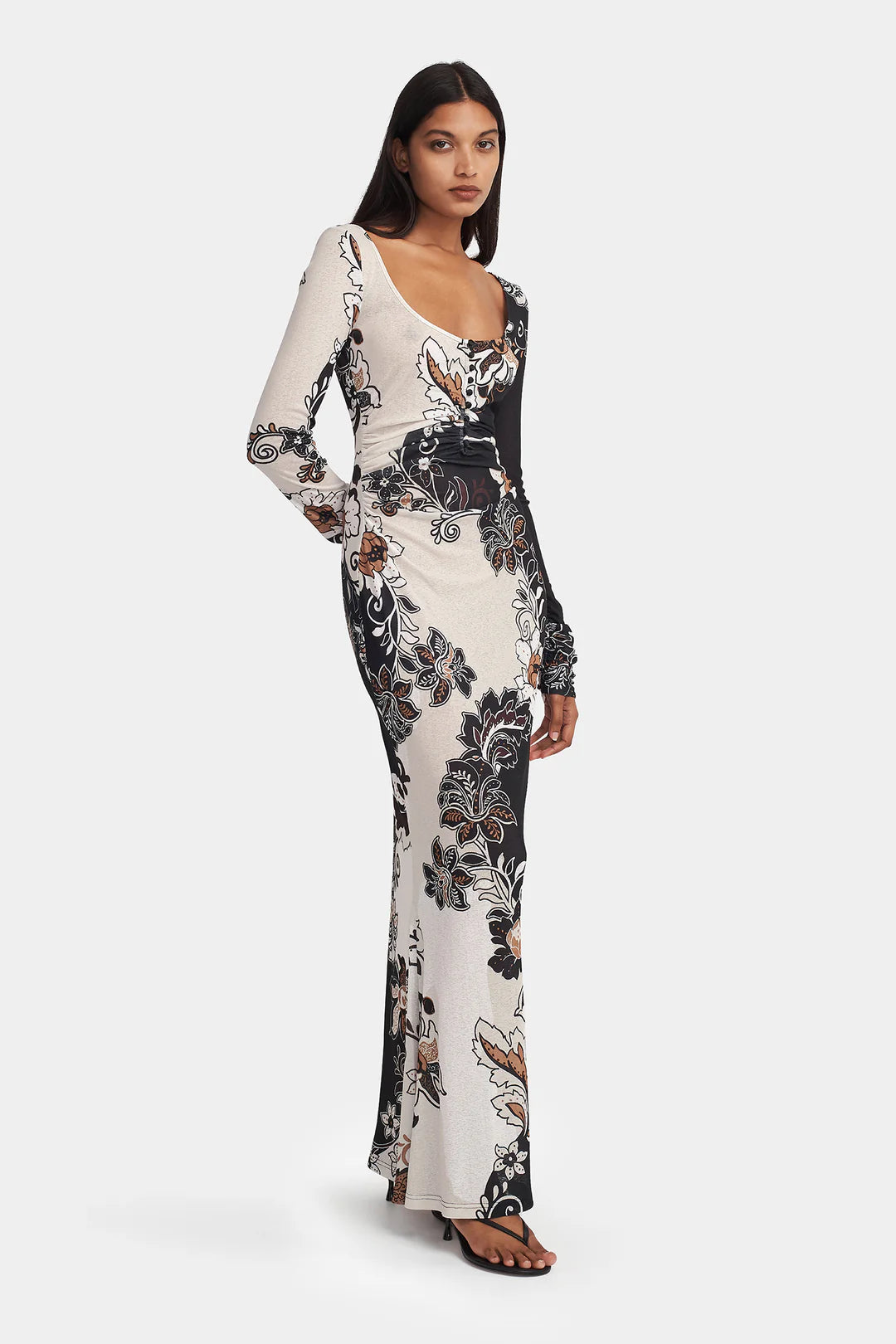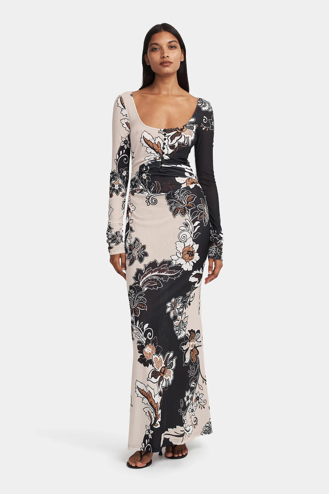 The Amabelle Dress is your next favorite dress. Cut from a textured hosiery jersey, the silhouette is immensely flattering. Featuring a wide scooped neckline, fitted long sleeves, light gathering on the waist, and a full hem, the dress can be easily dressed up or down.