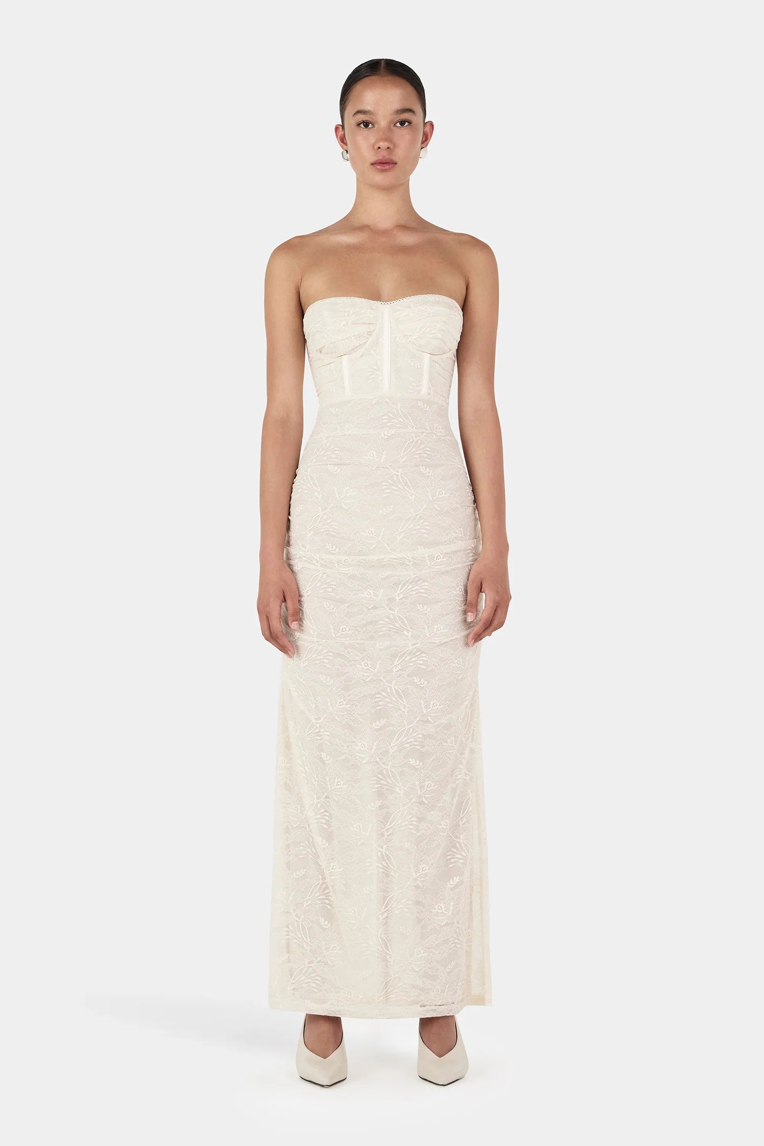 The Campari Lace Dress is a stunning fitted lace maxi dress with ruched bust cup shaping giving a contoured fit while the boning in the bodice offers additional structure and support. The dress has adjustable straps and an invisible hook and eye zipper closer. The Campari Lace Dress is the perfect sleek look for you next special event.