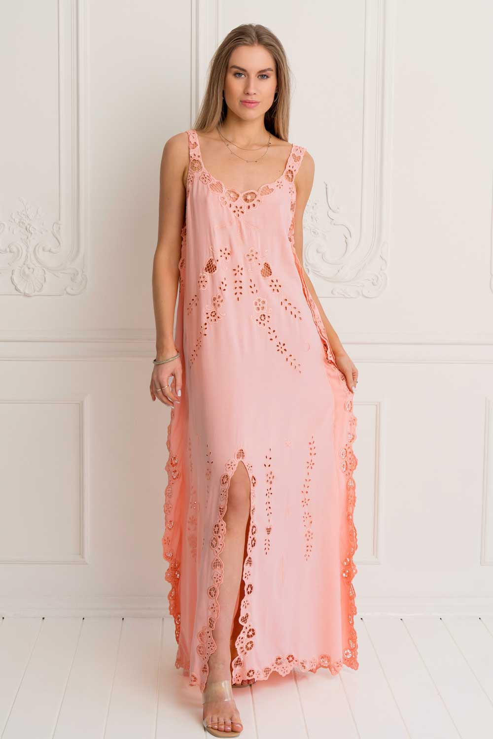 Truly a piece of art, this divine maxi slip is one of our most exclusive and limited-edition beauties this summer. Romantic and elegant, Chamberie slip is inspired by our signature kaftan silhouettes featuring intricate handcrafted cropped out details throughout and chic high split at the front, giving it a beautiful swish as you walk. It can be worn barefoot on the beach while you stroll art craft markets and cafes or during a night out paired with tanned wedges and fine jewellery for a more dressy look. Loose fit.