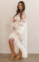 All eyes on lace in the Joelle Maxi! This romantic beauty features sheer lace, soft ruffle details, and a flowy high-low hem that moves with you. Finished with a built-in slip for just the right amount of coverage, it’s the perfect piece for making a sweeping entrance!