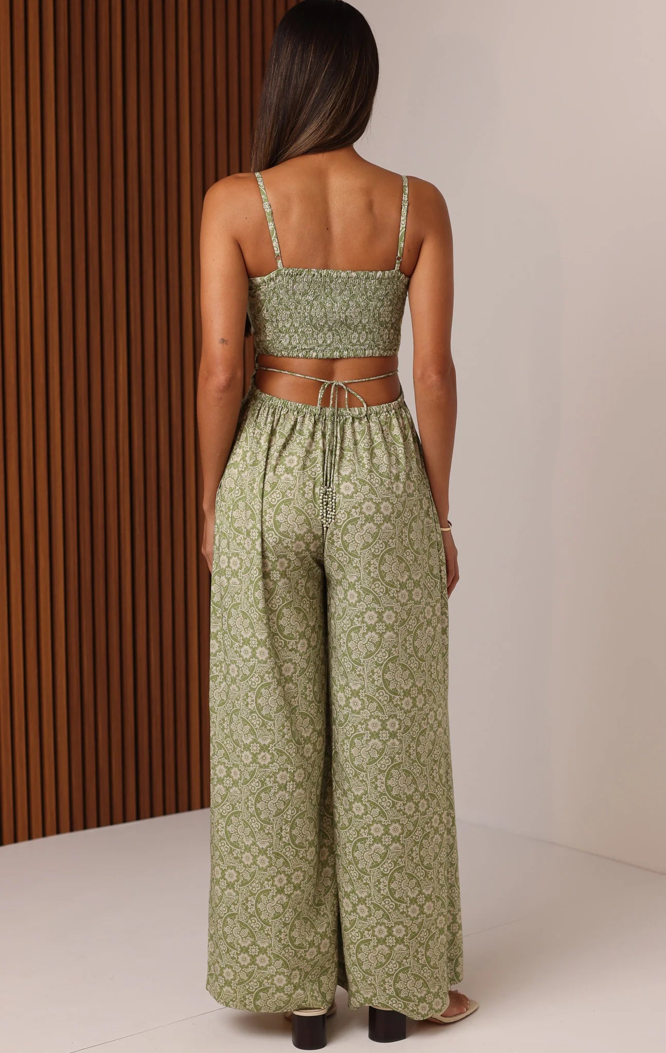 Shore's Josephine Jumpsuit is the perfect blend of practical comfort and style. The beautiful green pattern and cut outs make it the perfect piece for vacay or a sunny day outfit!