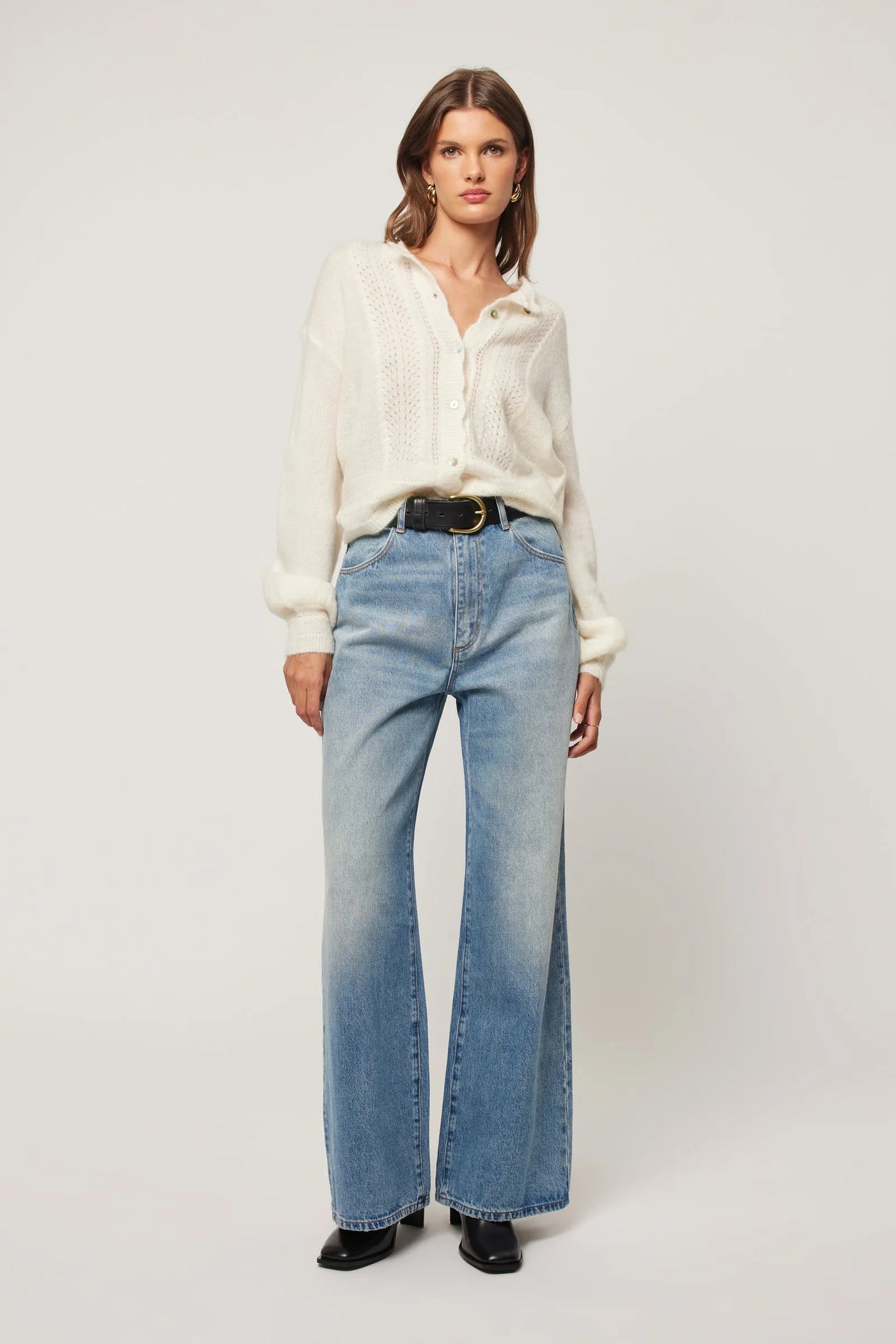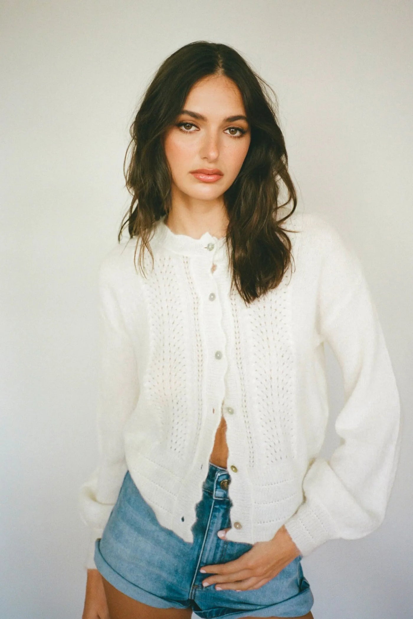 • Features river shell buttons and sweet vintage inspired lace knit panels