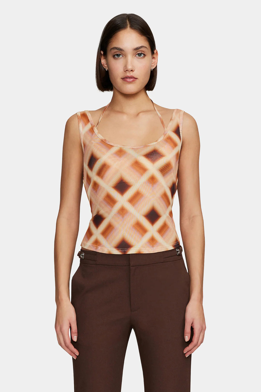 The Natalia Top is a layered tank with a scooped neckline and adjustable ties for the perfect fit. The top is cut from our season favorite Caramel Check fabrication. Pair back with your wardrobe staples for the perfect elevated basic.