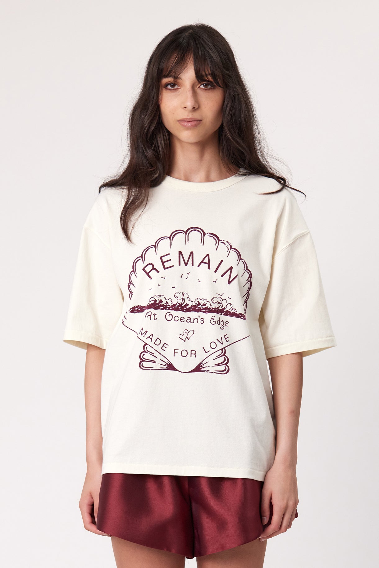A staple tee for every wardrobe. The Ocean's Edge tee is a short sleeve tee with a relaxed fit. Featuring a large custom chest print and exaggerated sleeves. Perfect with your favourite denim for an effortless everyday look.