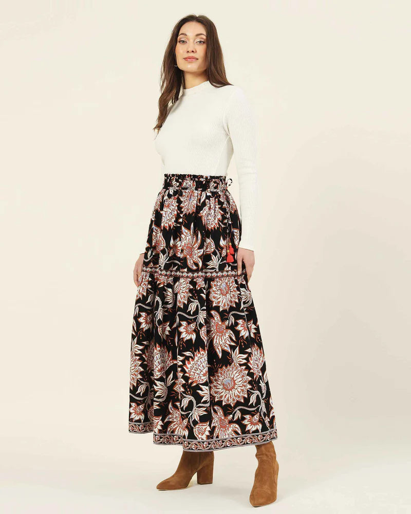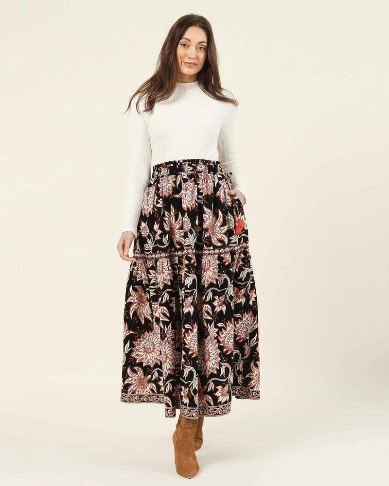 We love a skirt that is not only easy to wear but also effortlessly flattering. Rosalita cinches in perfectly at the smallest part of your waist, and flatters with a universal length that makes every height happy.