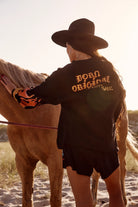 Designed for a relaxed unisex fit, this standout piece features bold flame prints running down the sleeves, a large Flaming Cowboy graphic on the front, and a striking Born Original print on the back. With additional hand-painted print details, it’s guaranteed to bring out your YEE-HAW in style.