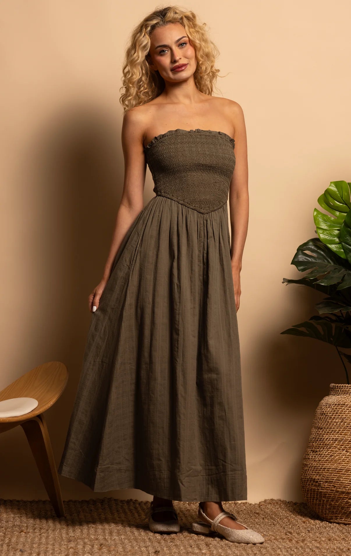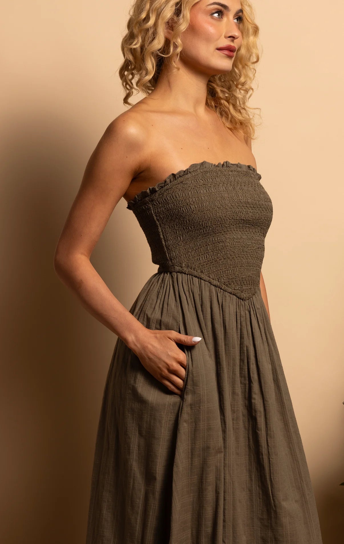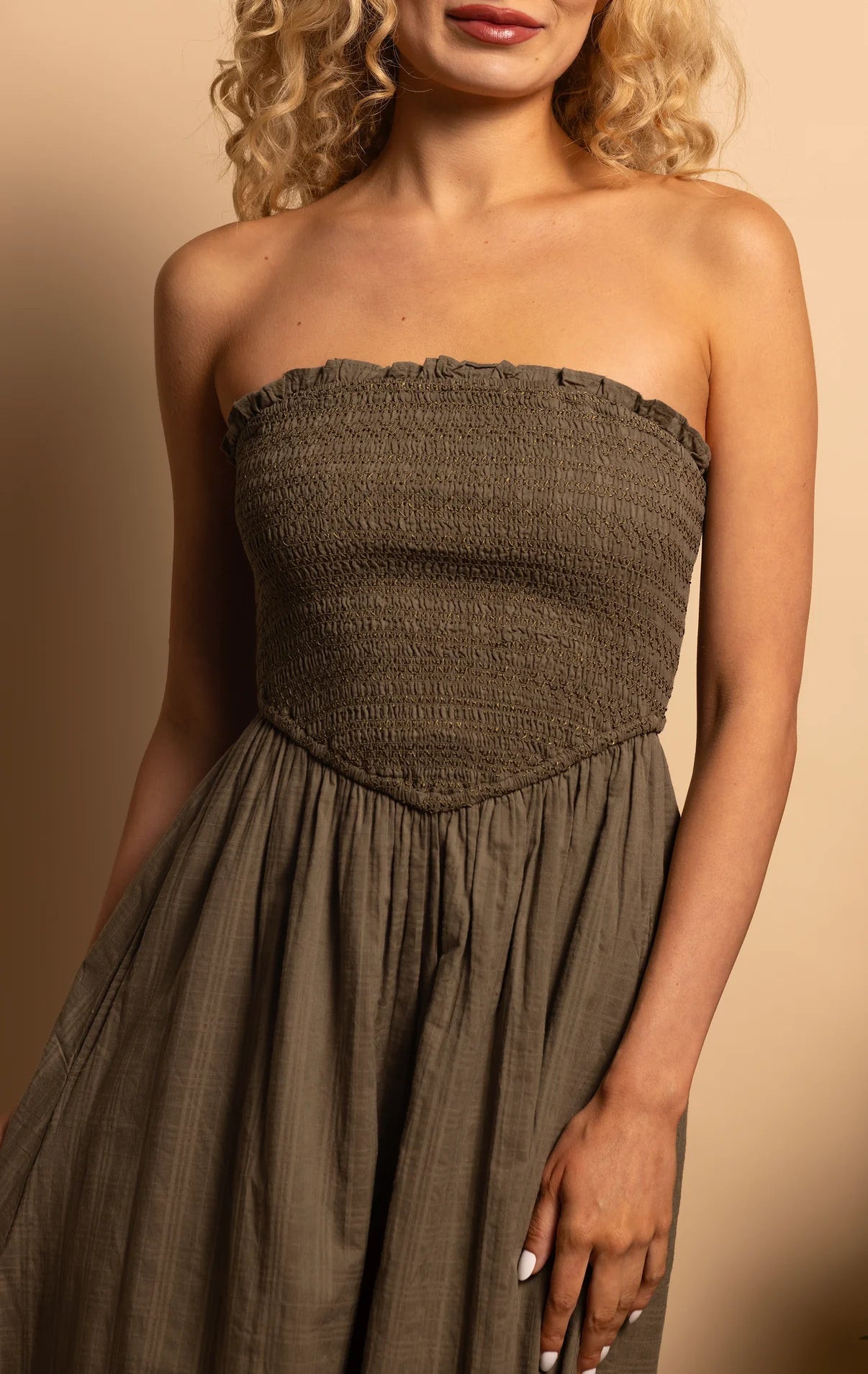- Top is fully smocked with a dipped design for a flattering silhouette