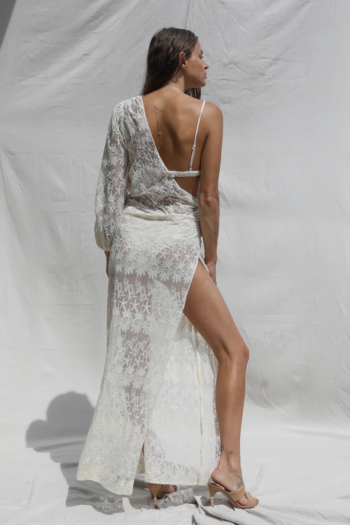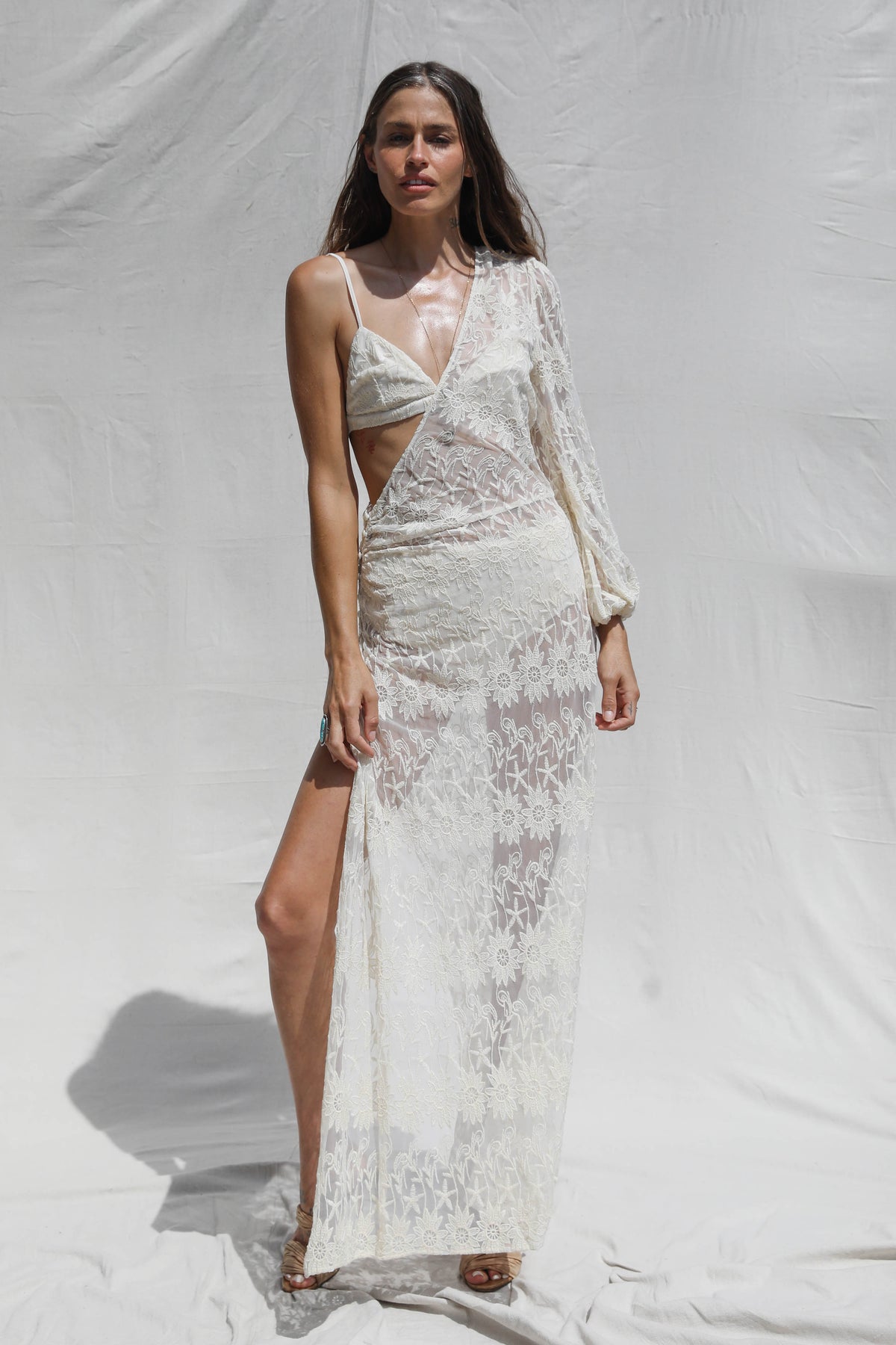 Wear it the included bralette and cheeky brief, style it over swimwear on vacay, layer it over your favorite slip. We made this piece for the beach goddesses, festival fiends, and barefoot brides alike.