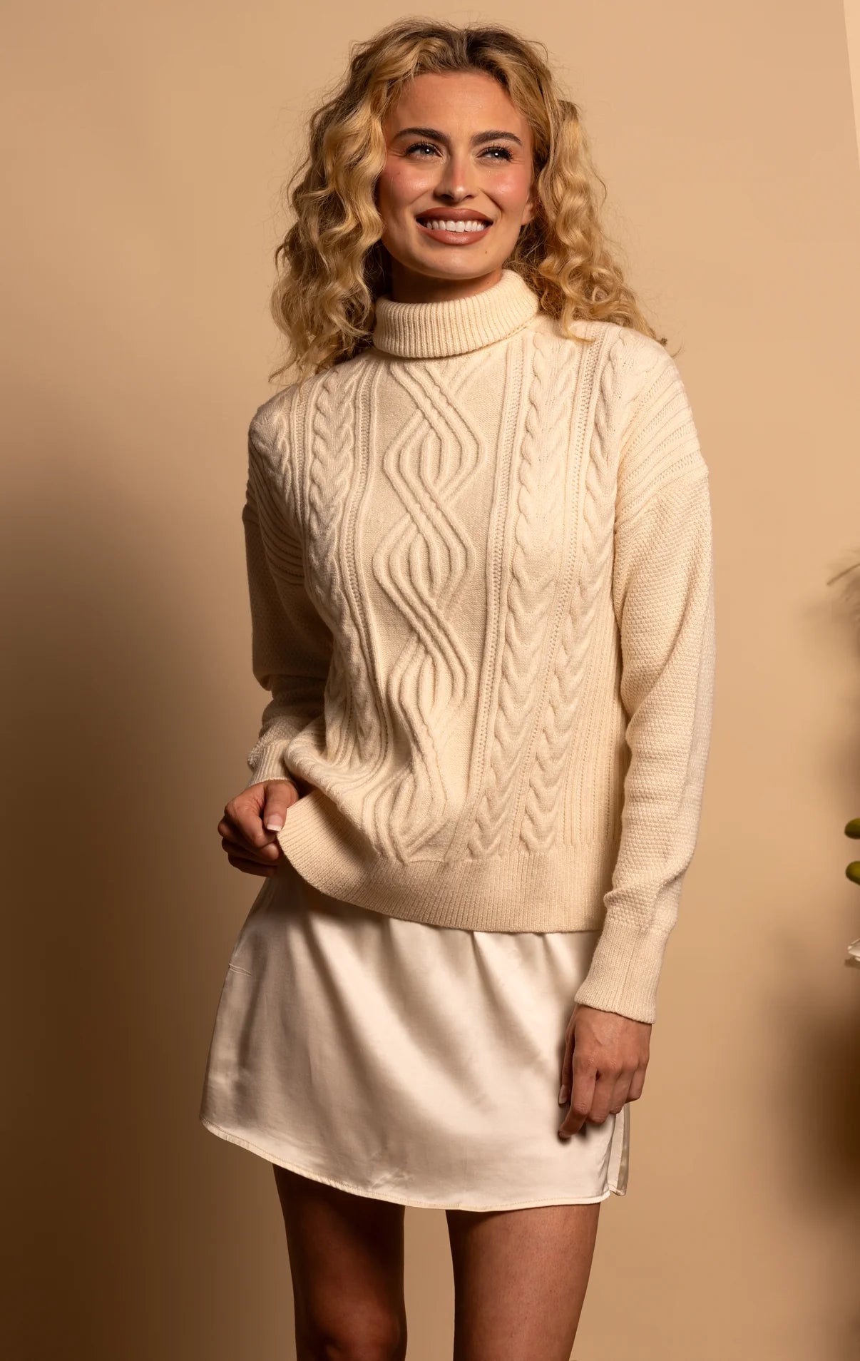 - Beautiful cable knit design on front and back