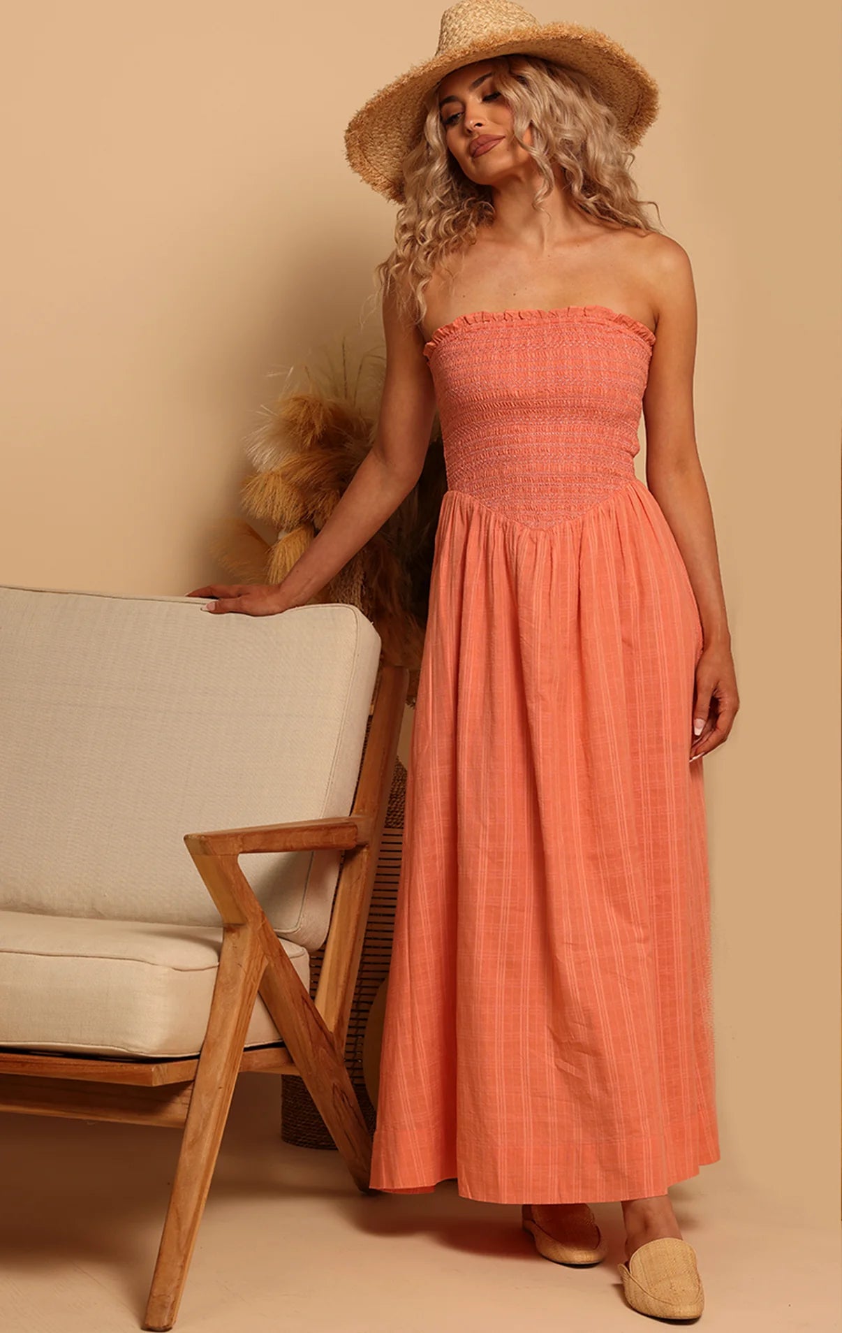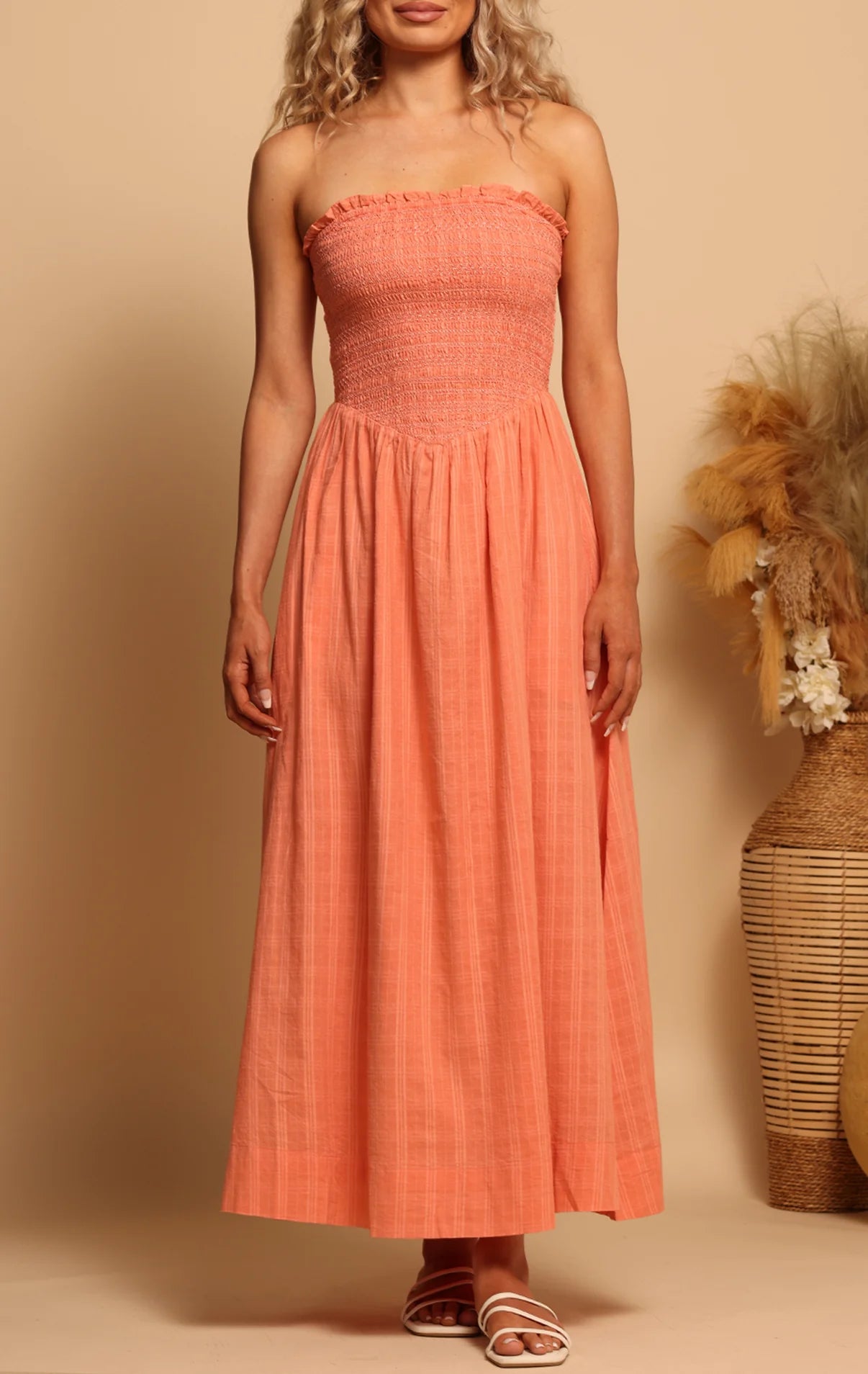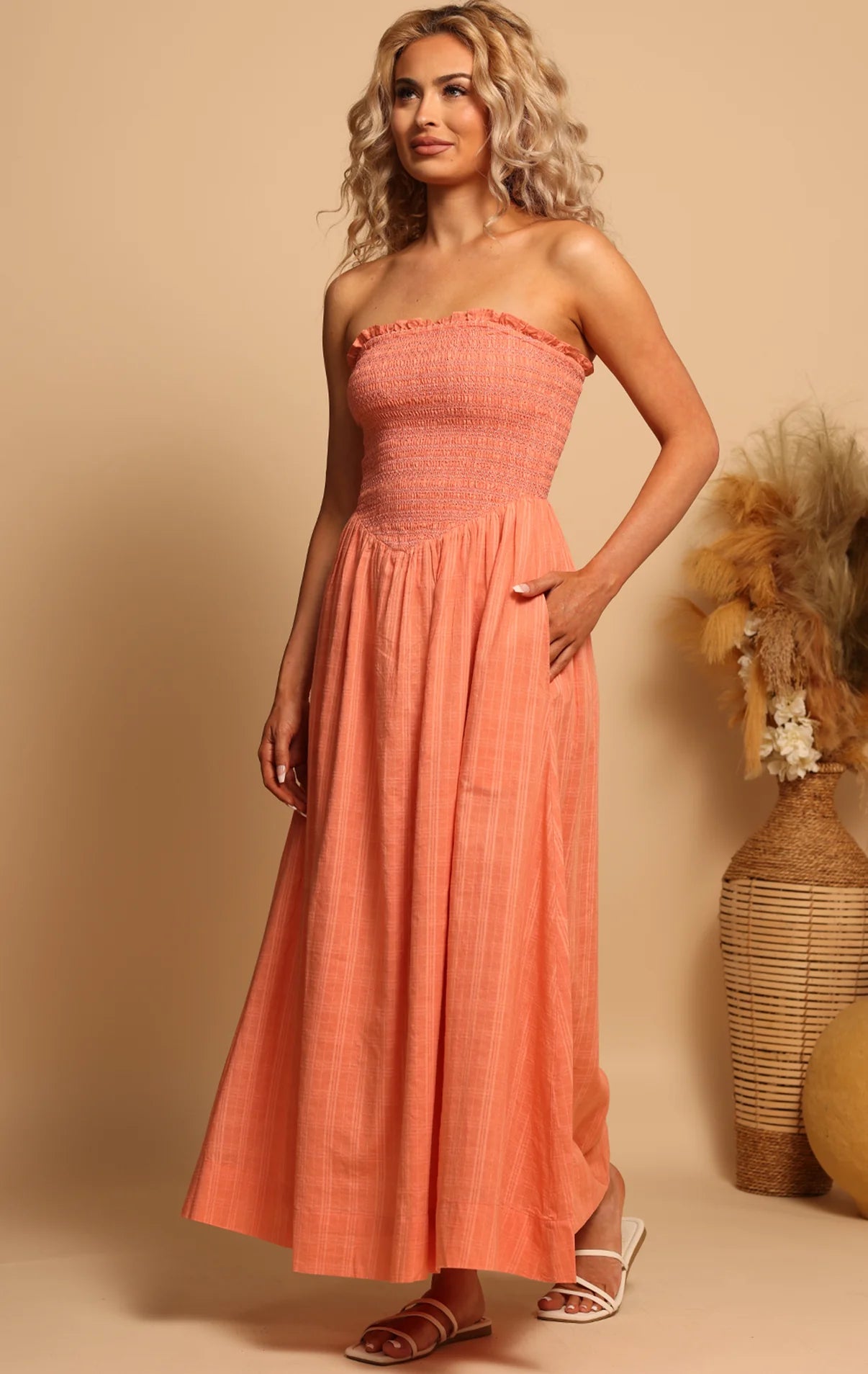 - Top is fully smocked with a dipped design for a flattering silhouette