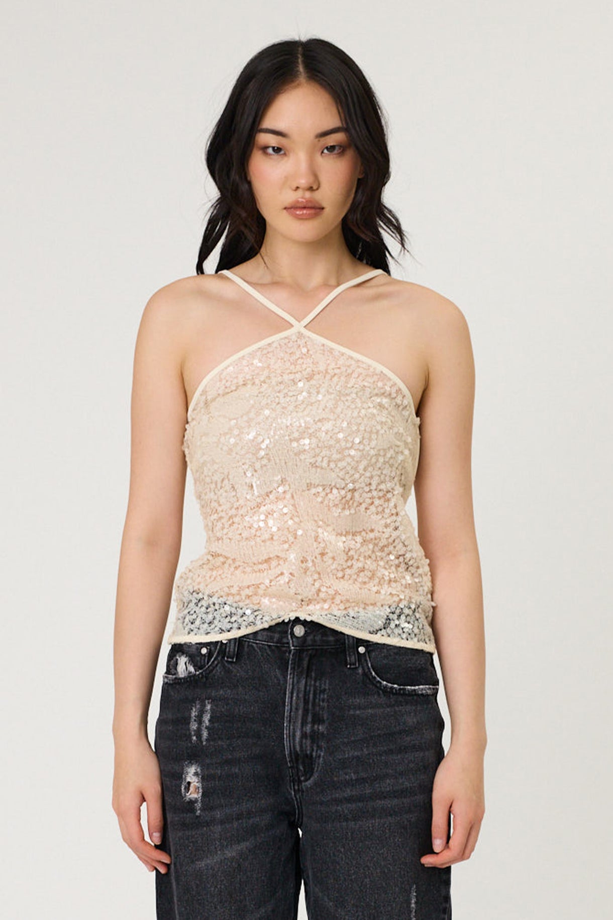 This cami top adds a touch of sparkle to your everyday outfit with its shimmering sequins. It's designed in a regular fit, with easily adjustable cross over front straps.