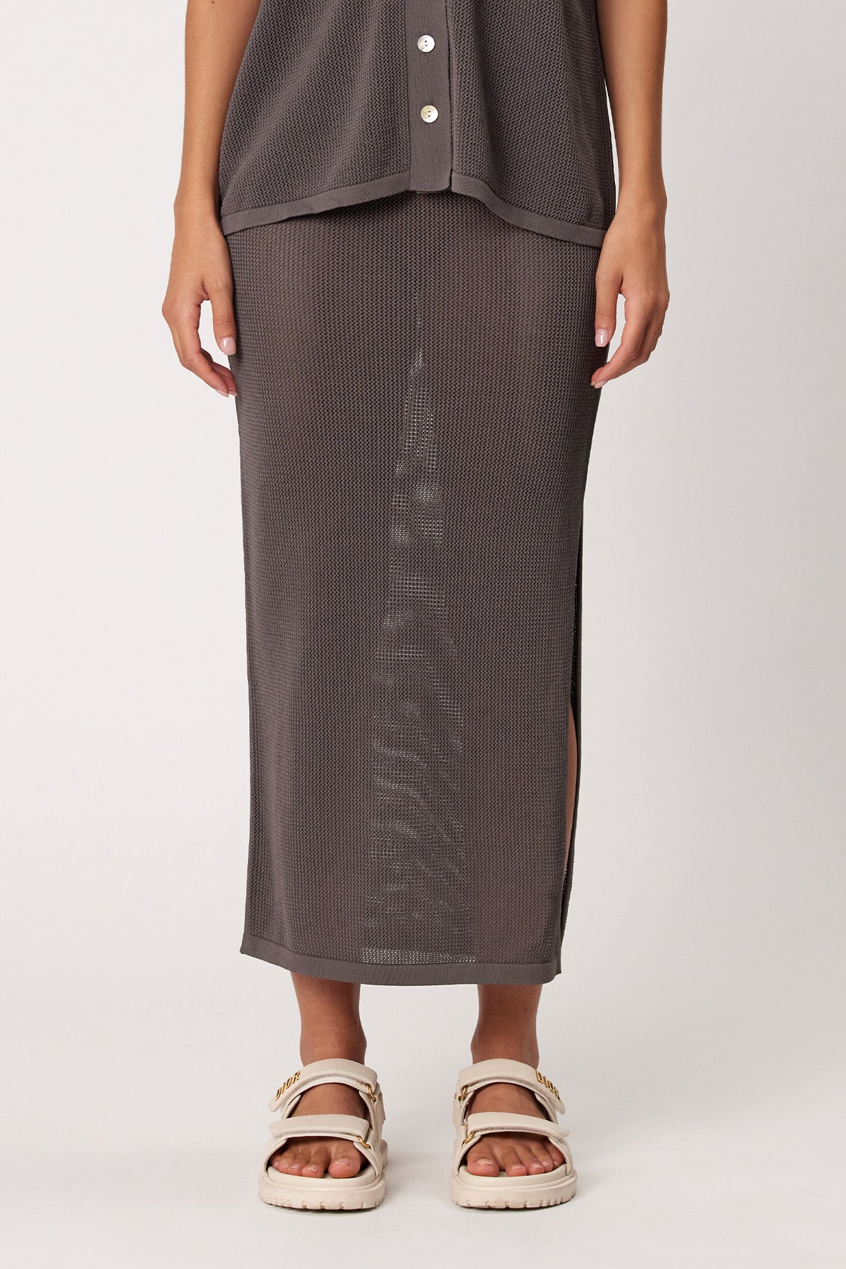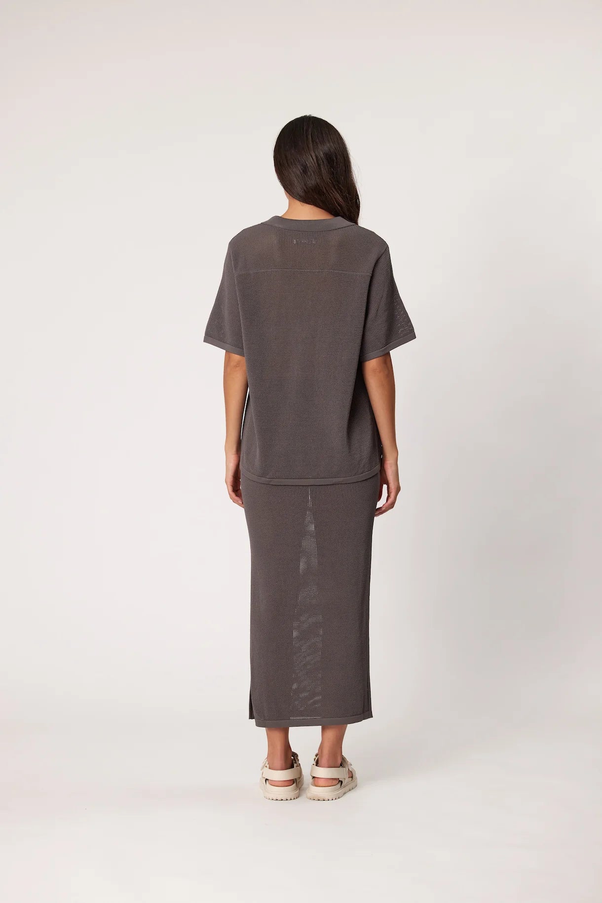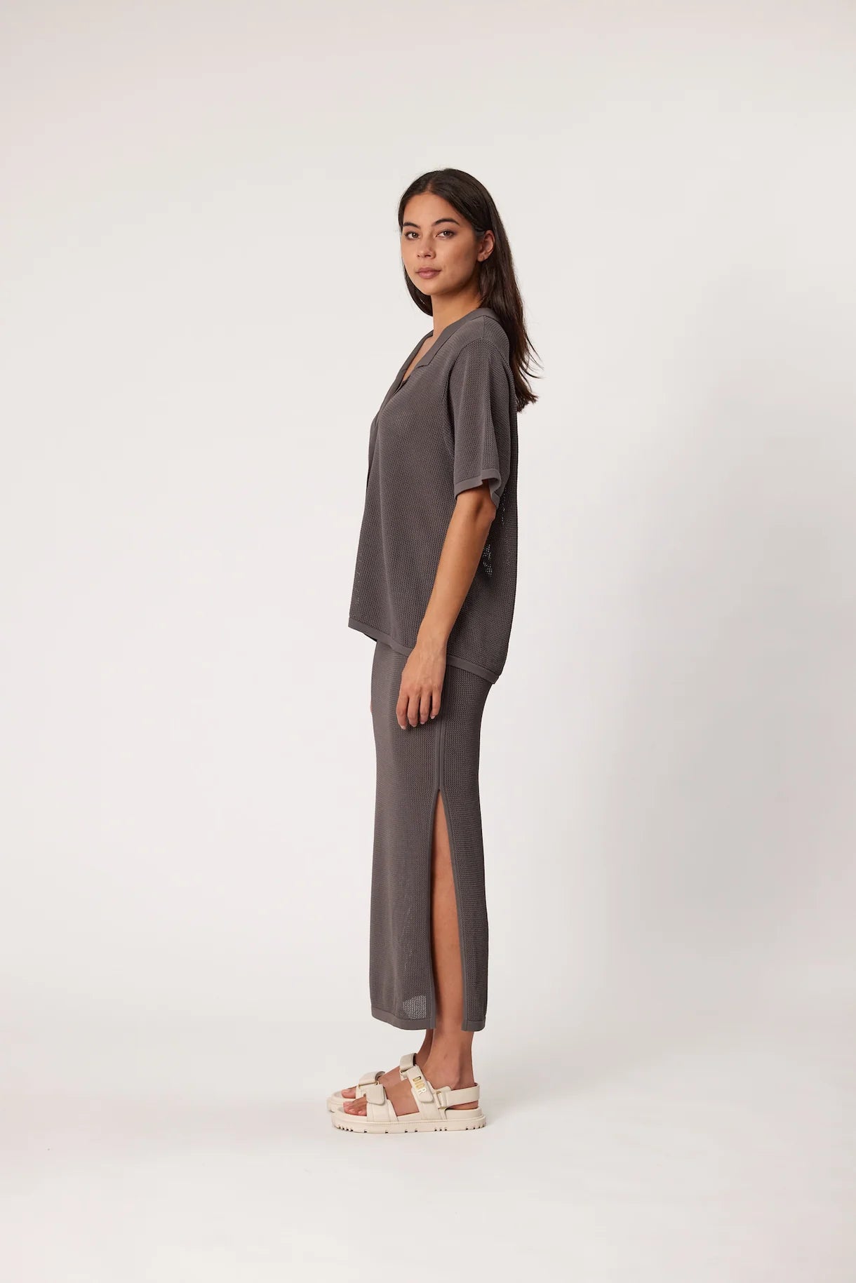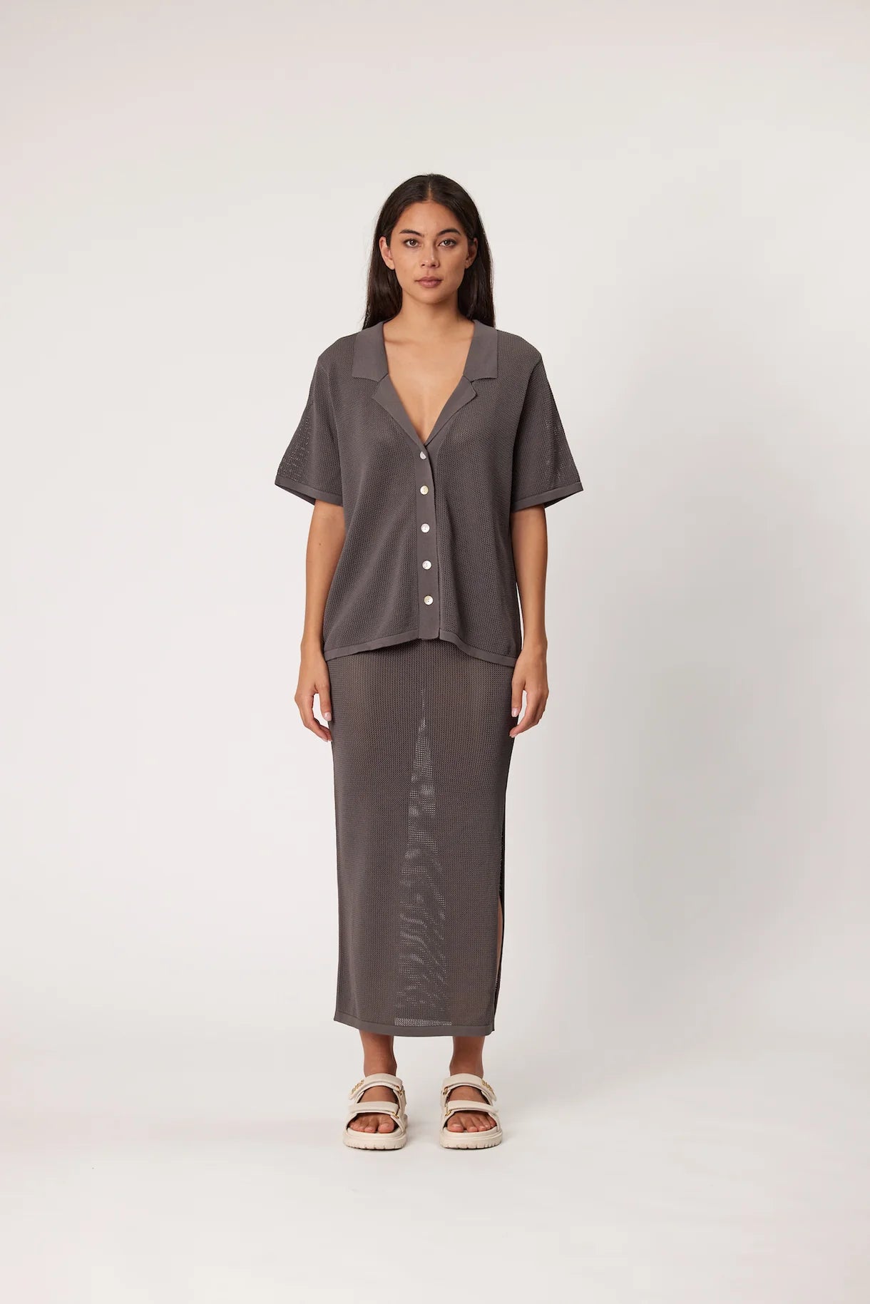 An easy beach day cover up. The Havana skirt features an elasticated waistband with a semi sheer unlined knit fabric. Elevate your look by pairing with the Amalfi shirt or dress down with your favourite oversized tee.