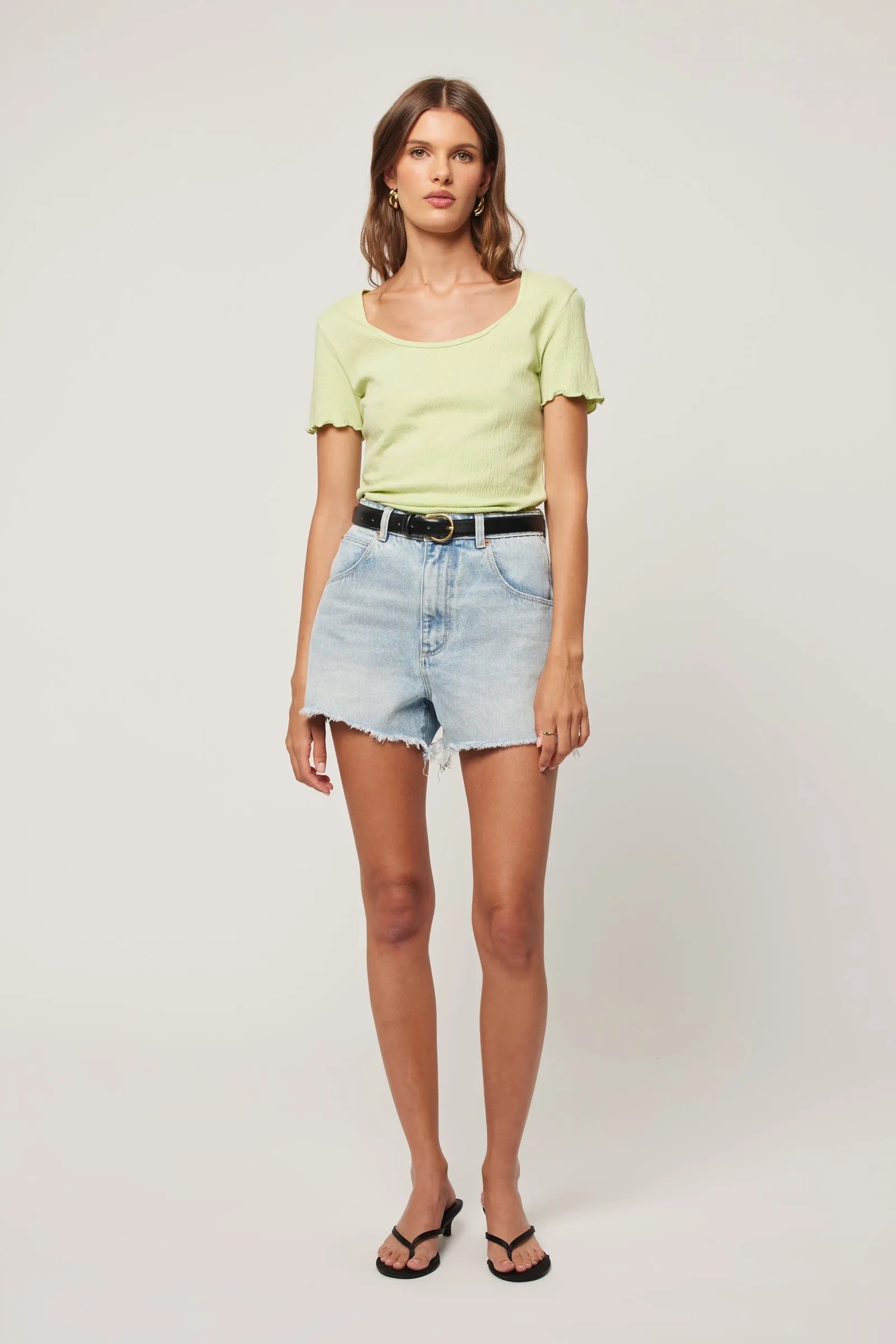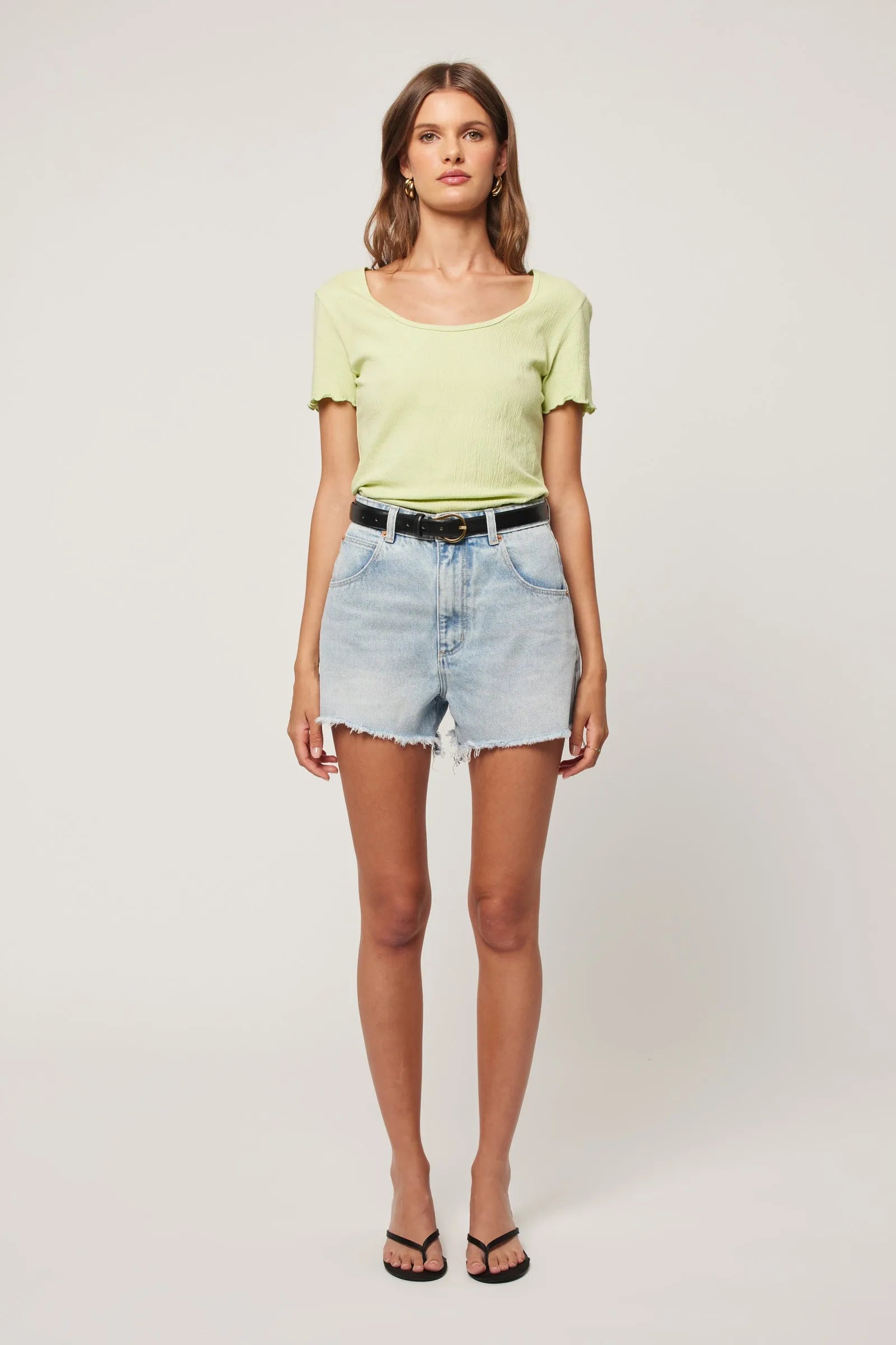 - A high rise short with a relaxed cheeky fit