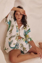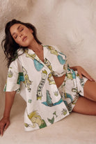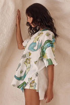 Crafted from luxurious linen, this shirt features an oversized button up fit, side splits, short sleeves with split and adorned with a Margarita lovers quote on the back.