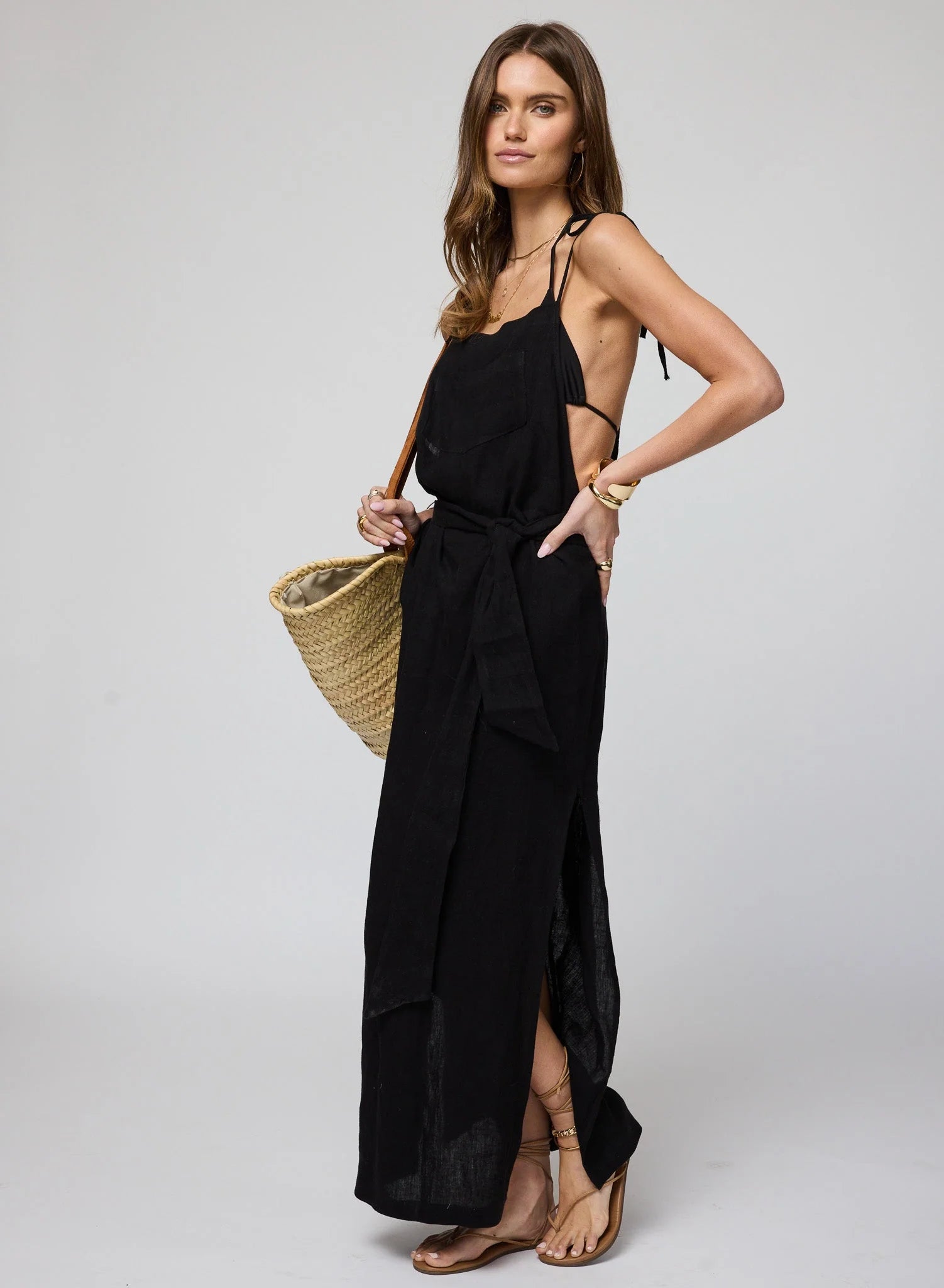 The Some Beachy Overall Dress has a relaxed fit with high double slits and a soft, self-tie belt. It’s the piece you throw on after a morning swim—easy enough for the walk to the farmer’s market, polished enough to wear all day.