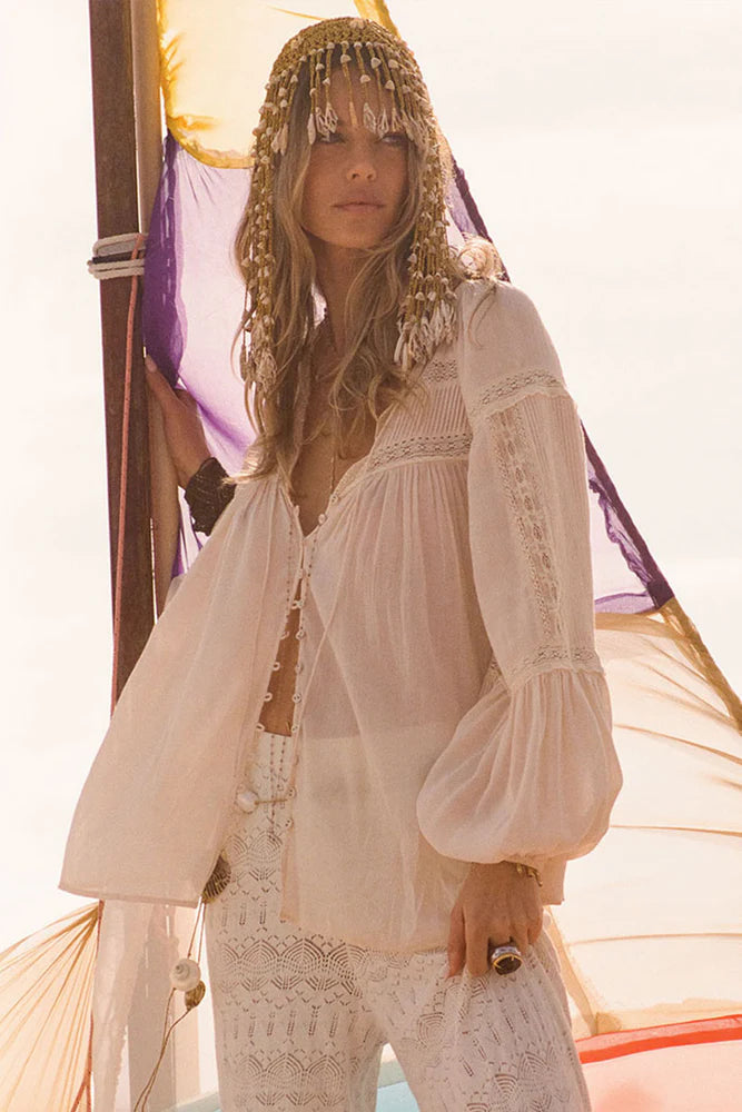The Teodora Blouse is a playful and unique addition to your wardrobe. Made from sustainable and eco-friendly LENZING™ ECOVERO™ Viscose and Organic Cotton, it features captivating details like raglan sleeves, pintuck and lace panels, and a button front with neck ties. Elastic cuffs add a stylish touch while ensuring a comfortable fit. Perfect for casual or dressed-up occasions, this blouse exudes fun.